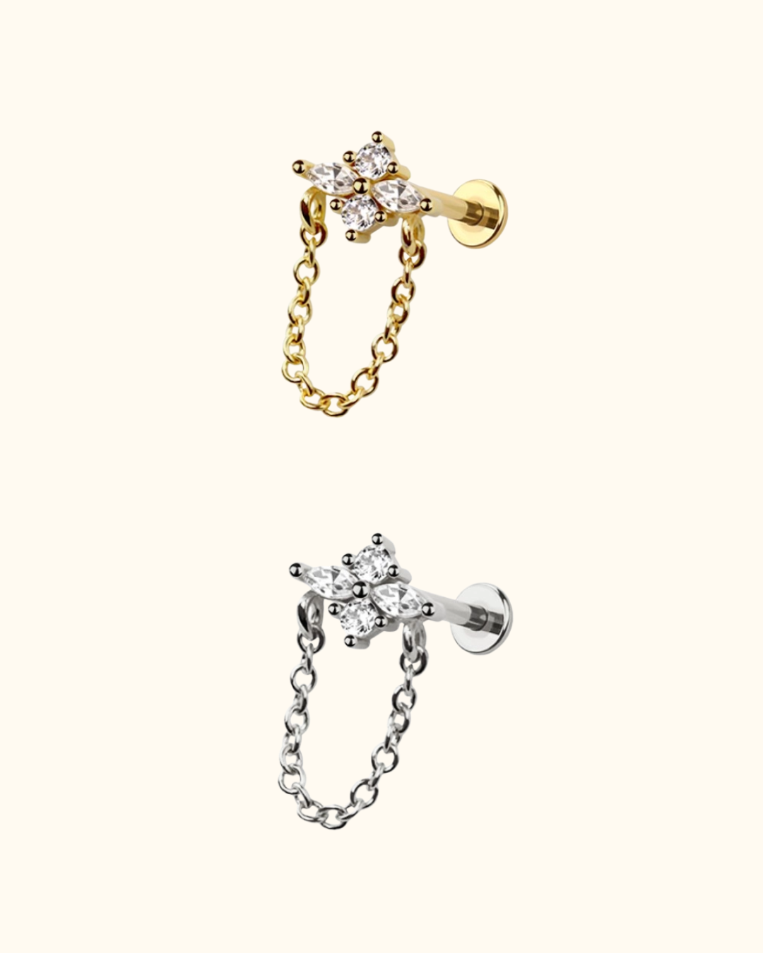 The prettiest flower marquise flat back earring that features a dangly chain!