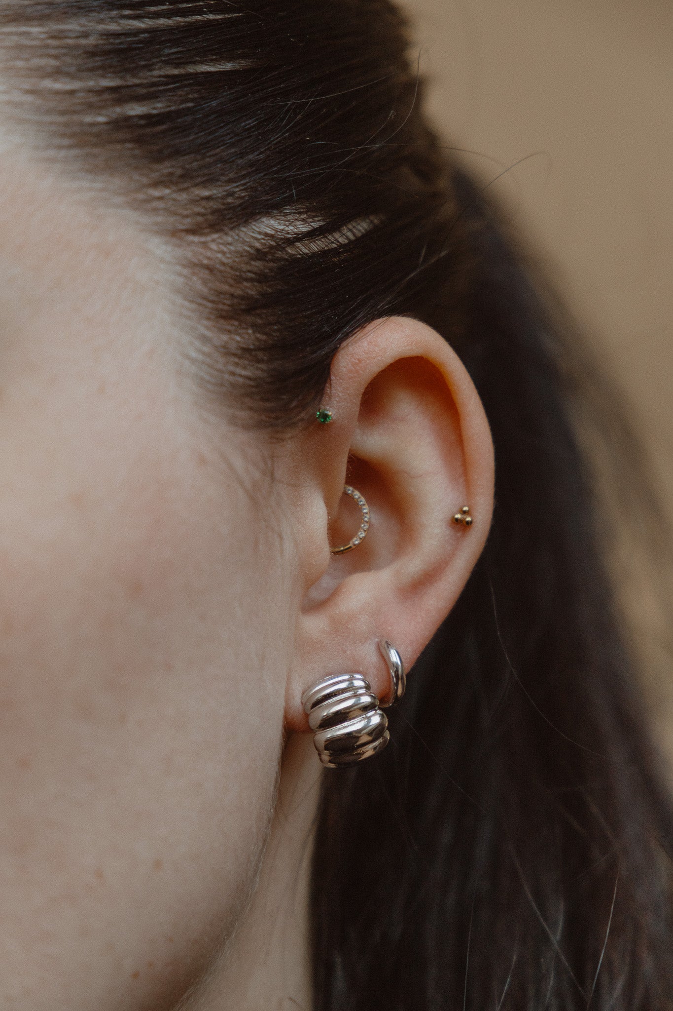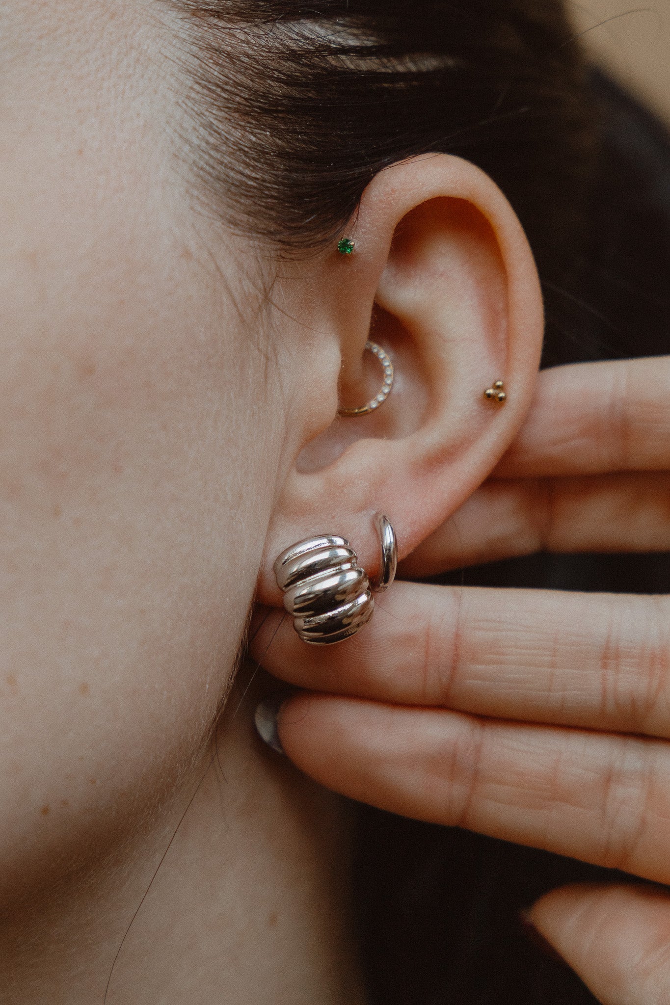A touch of London elegance. The Spencer Studs feature a softly sculpted, ribbed design that feels both regal and understated, perfect for everyday wear or a night out. Inspired by the timeless style of Princess Diana, these studs capture the charm of heirloom jewelry while keeping it modern. Lightweight yet striking, they’re a forever piece you’ll reach for again and again