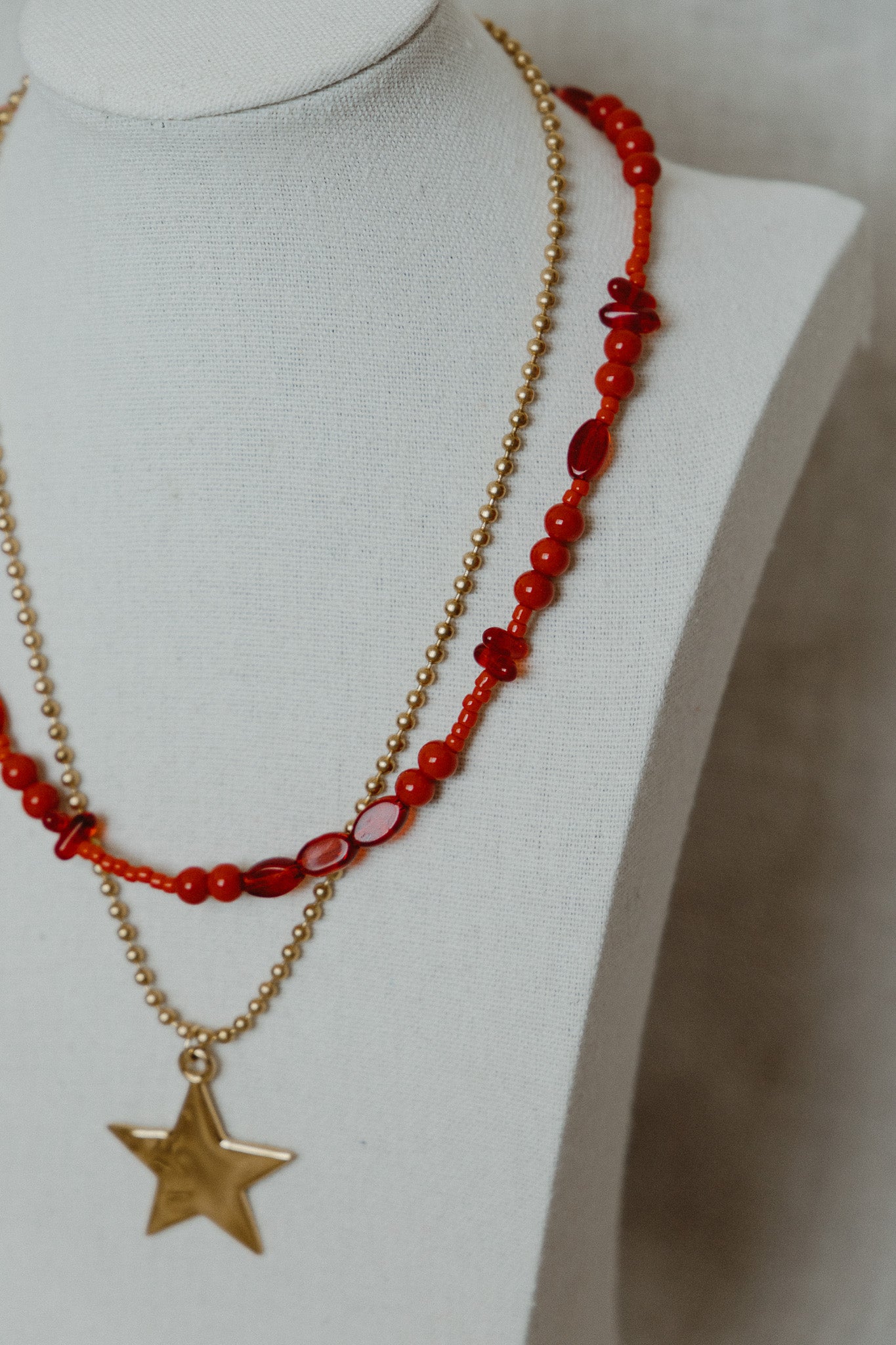 The Liberty Star Necklace features a textured gold star pendant on a delicate, beaded chain. Inspired by the quiet confidence of summer and the spirit of independence, this piece is part of The Americana Edit — made to layer, mark a moment, and shine on its own.